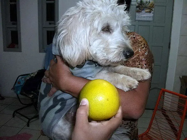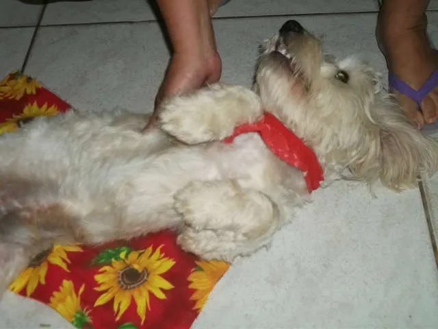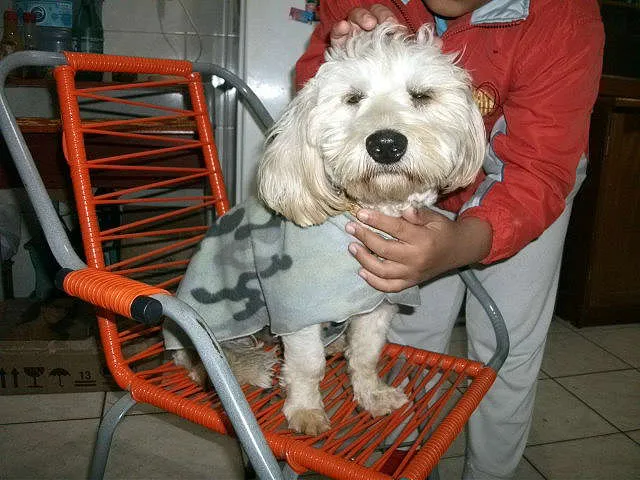 SHEDOM é um lindo mestiço de maltês, quase puro, já castrado, com cerca de