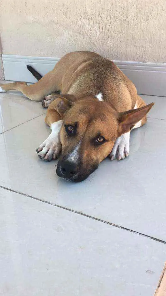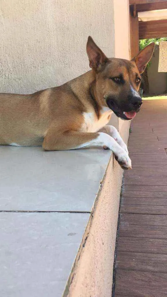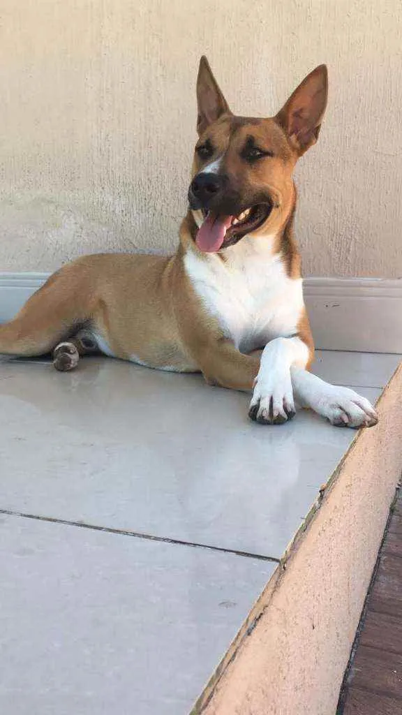 Super dócil, se relaciona bem com outros cães, porte grande 24kg. Necessário ter pátio, ele não está acostumado a correntes.