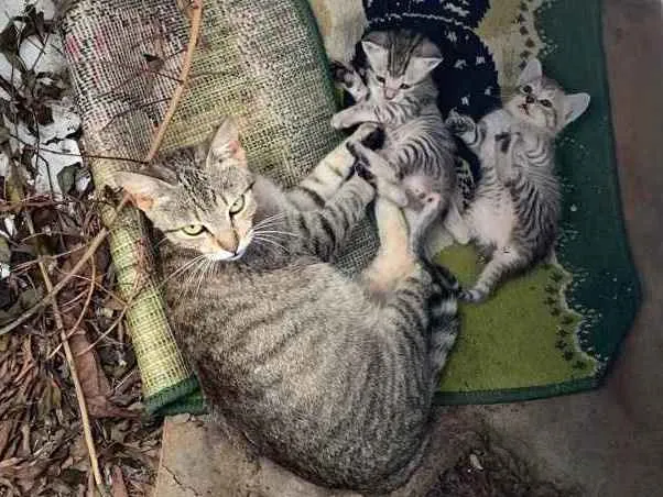 Mia é uma gatinha de 10 meses, super dócil, carinhosa! Nunca havia visto um gato tão doce, adora carinho, que chega a pedir! Tem três bebês trigêmeos: dois meninos e uma menina, vou tentar atualizar as fotos, foi um pouco difícil chegar até eles! Estou cuidando, fazendo o possível, mas meus cães odeiam gatos e por isso não posso ficar com eles, gostaria muito da ajuda de quem puder adotar um desses 4 anjos! Mia é maravilhosa, merece muito amor, assim como os bebês!