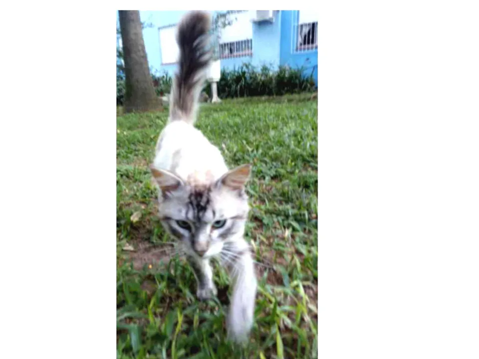 Animal muito dócil,está bambaleando pelo meu condomínio,muito querido,corre atrás,ama colo,e muito calmo,porém está bem magro estamos alimentando ele pra ver se ele dá uma animada,pelagem muito linda