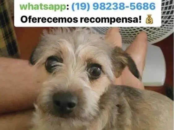 Cadela fugiu ontem de manhã no bairro Laranjal em Osório/RS. Ela é pequenininha é muito docil. Oferecemos recompensa! O DDD do telefone de contato é (19).