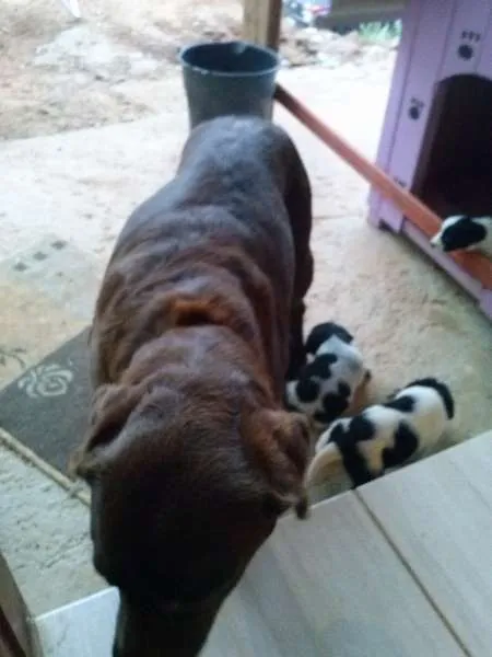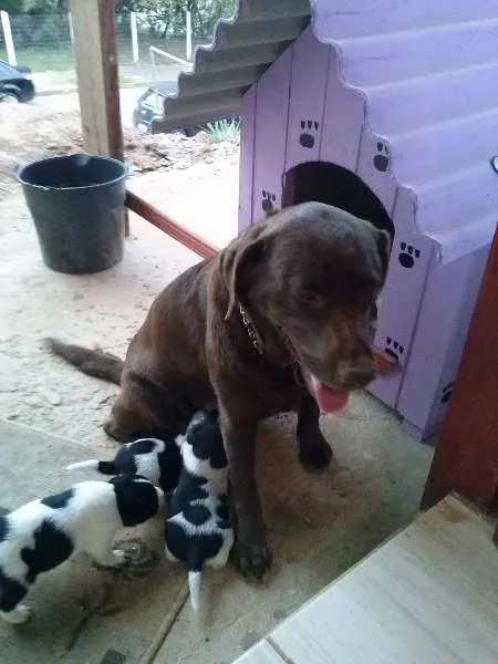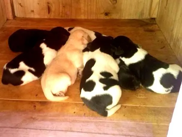 Minha labrador deu cria a 7 filhotes lindos e fofinhos, com a cruza de outro labrador e também um vira lata.
