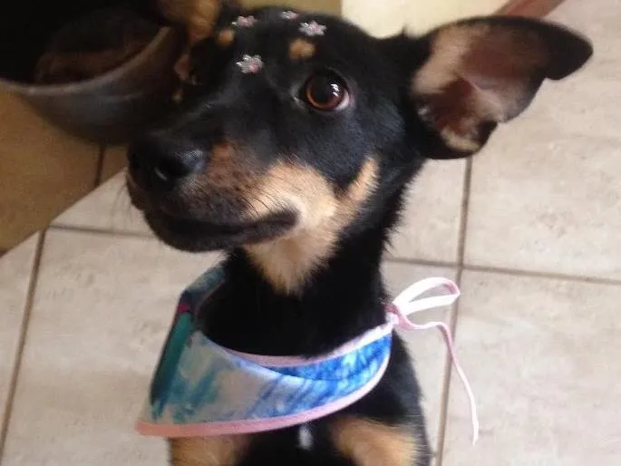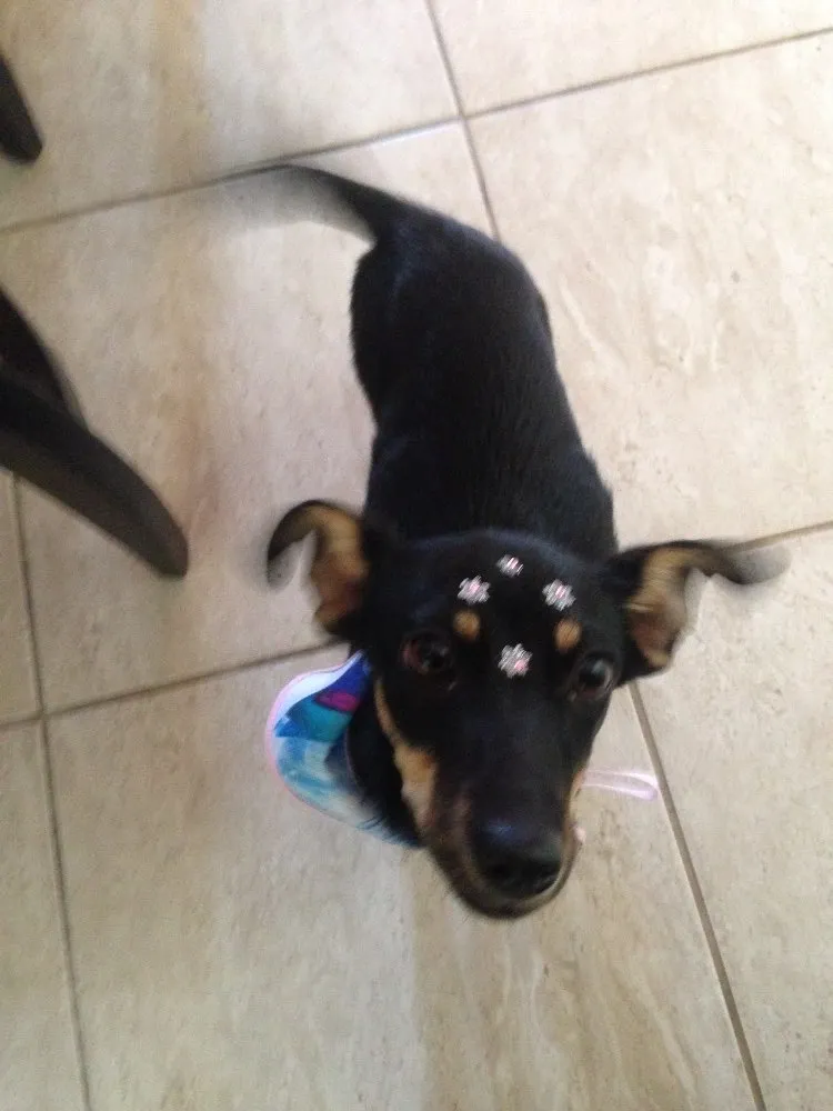 Esta menina linda apareceu hoje pela manhã precisando de ajuda. Já está limpa, sem pulgas ou doenças. Apenas fazendo tratamento para vermes, o qual já adquiri os remédios.