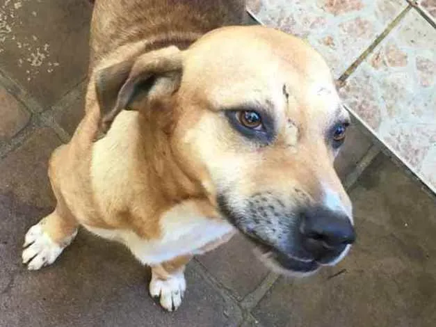 Oi, aumigos! Me chamo Anúbis e como podem ver na foto, eu não tenho minha perninha esquerda devido a um acidente quando era mais novo. Mesmo sem minha perninha, ainda sou muito alegre e audoro ir correndo abraçar quem chega pra me ver. Quer ver como eu pulo só com 3 patinhas? Me audota!
