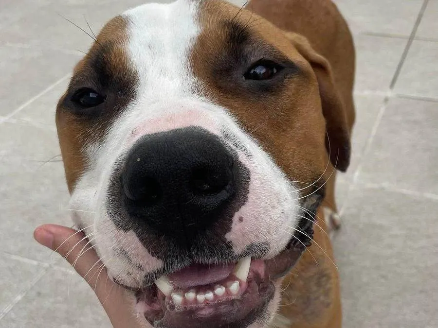 Oi, eu sou o Apollo! ?? Um cachorro de porte grande, dócil e cheio de amor pra dar. Minha história não foi fácil – fui usado para treinar outros cães e fiquei muito machucado, mas hoje estou recuperado e pronto para viver uma nova vida. ??