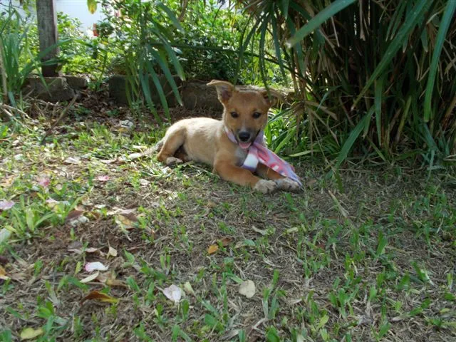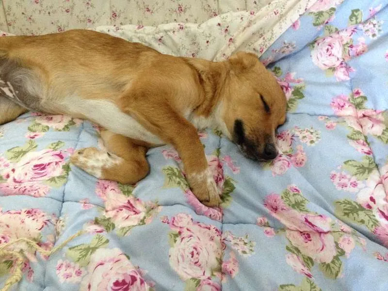 Bali, tem em torno de 7 /8 meses. É muito meiga, carinhosa com as pessoas e serelepe como todo o filhotinho. Provavelmente não crescerá mais, pois é baixinha, com as patinhas mais curtas. Convive bem com cães e gatos, ideal é que tenha mais um cãozinho para ela brincar, porque gosta da companhia de outros animais. Está vermifugada, vacinada e está castrada. Aguarda adoção em POA. Contatos: Danielle- danidentzuk@gmail.com TEL.: 51-96-11-47-22