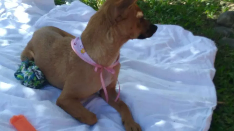 A Biscoito foi resgatada grávida, nasceram 3 filhotes que já foram adotados, foi castrada. Tem em torno de 7 quilos, faz necessidades somente na rua. Muito carente, carinhosa, adora colo, passeia na guia.