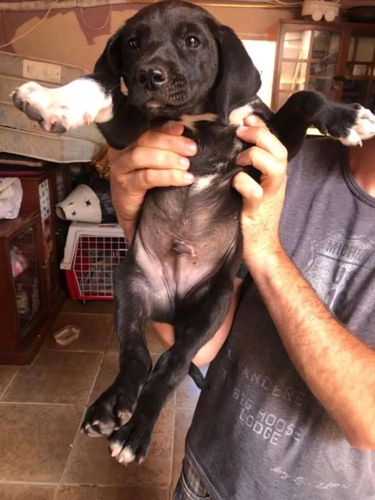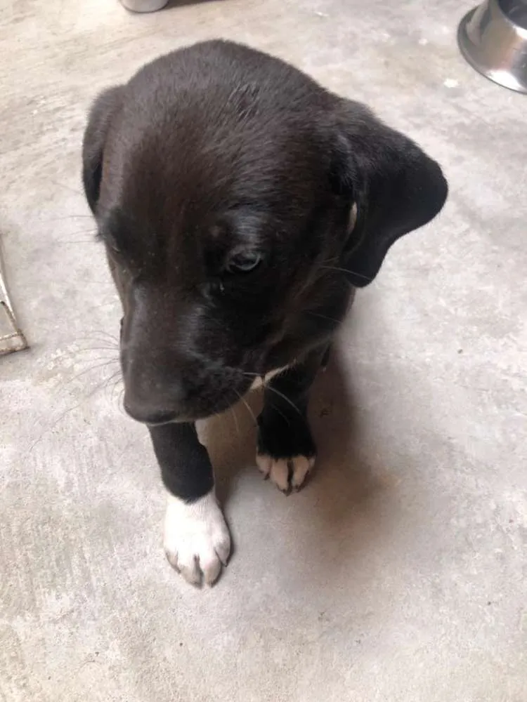 Este bebezão está disponível para adoção. Macho, pelagem curta, preto com manchas brancas nas patas e peito, será porte G, tem aproximadamente 4 meses. Foi resgatado com a mãe e irmãos em Gravataí-RS. Interessados em adotar: contato pelo Whatsapp 51 98458 7980. Adoção mediante entrevista e termo de responsabilidade. Somente para maiores de 18 anos, com renda própria e moradia fixa.