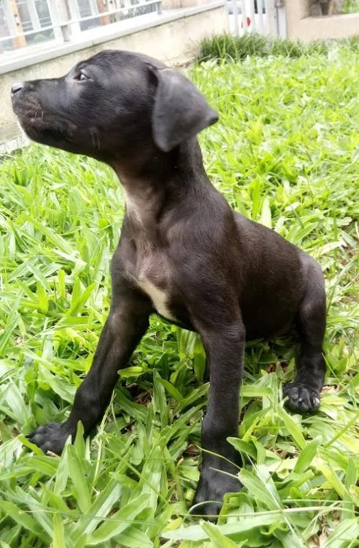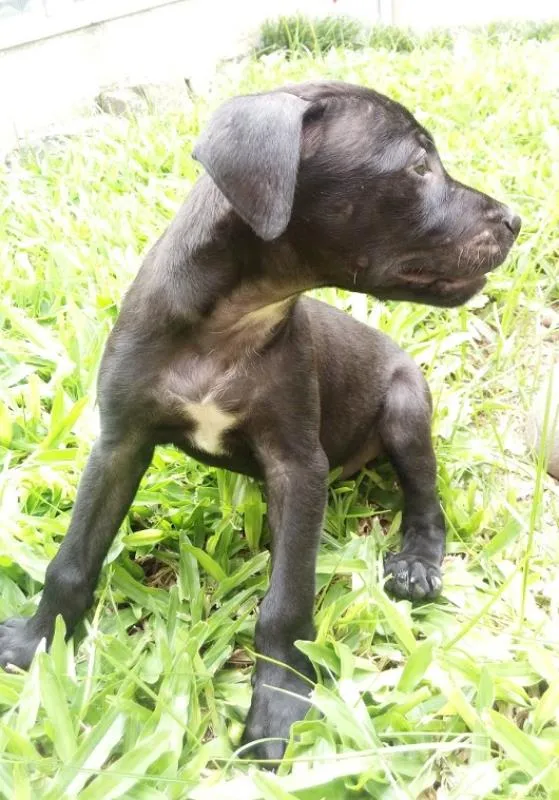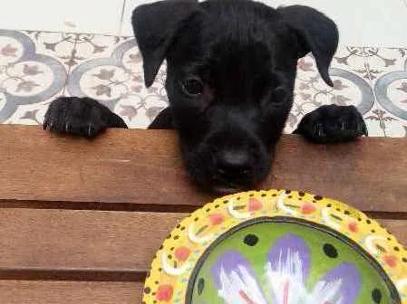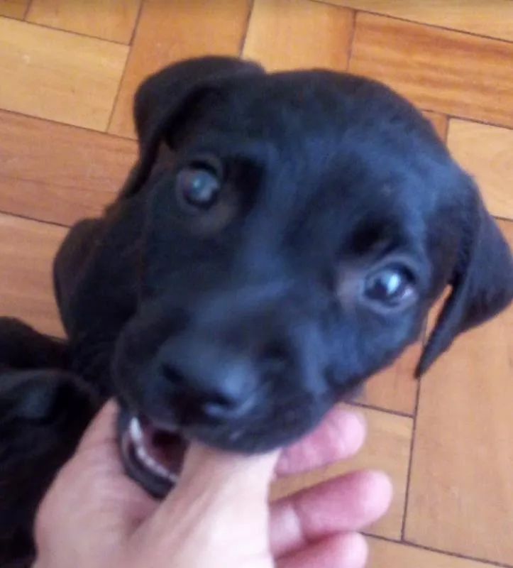 Lindo machinho preto com manchinha branca no peito e mais umas pequenas perdidas pelo corpinho. Meigo e dócil, porém ativo como todo o filhote. Provável porte médio. Não indicamos para crianças porque mordem com dentes fininhos, o que machuca um pouquinho. Desvermifugado, serão vacinados e castrados (no momento certo). Se adotados antes disso, os procedimentos serão por conta do adotante. Levamos no local. Solicitamos preenchimento de Questionário de Adoção, será assinado Termo de Responsabilidade e será feita visita ao local.