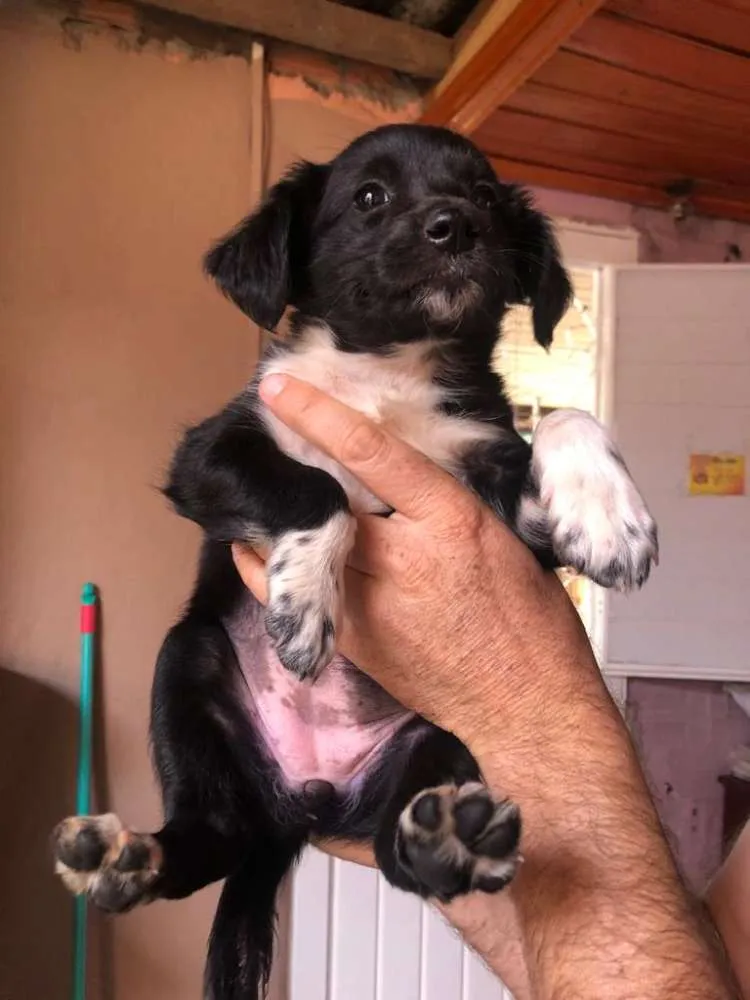 Linda cadelinha disponível para adoção. Fêmea, pelagem média/longa, preta com manchas brancas nas patas e peito, porte M/G, aproximadamente 4 meses. Foi resgatada com a mãe e irmãos em Gravataí-RS. Interessados em adotar: contato por Whatsapp 51 98458 7980. Adoção mediante entrevista e termo de responsabilidade. Somente para maiores de 18 anos, com renda própria e moradia fixa.