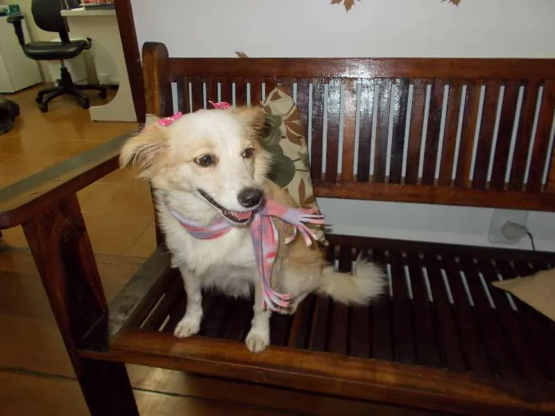 Brisa, é esse pequeno anjo, linda, doce e peludinha. Tem em torno de 2 aninhos, tem porte pequeno, pesa em torno de 7 kg. É meiga, calma, sossegada e um pouco tímida inicialmente. Na casa de passagem onde está aguardando um lar dorme na cama com uma criança, por isso é muito meiguinha e carinhosa. Está castrada e vacinada. Relaciona-se bem com cães machos e fêmeas. Precisa de uma família para ser muito amada. Contatos: danidentzuk@gmail.com Tel.: 51-96-11-47-22