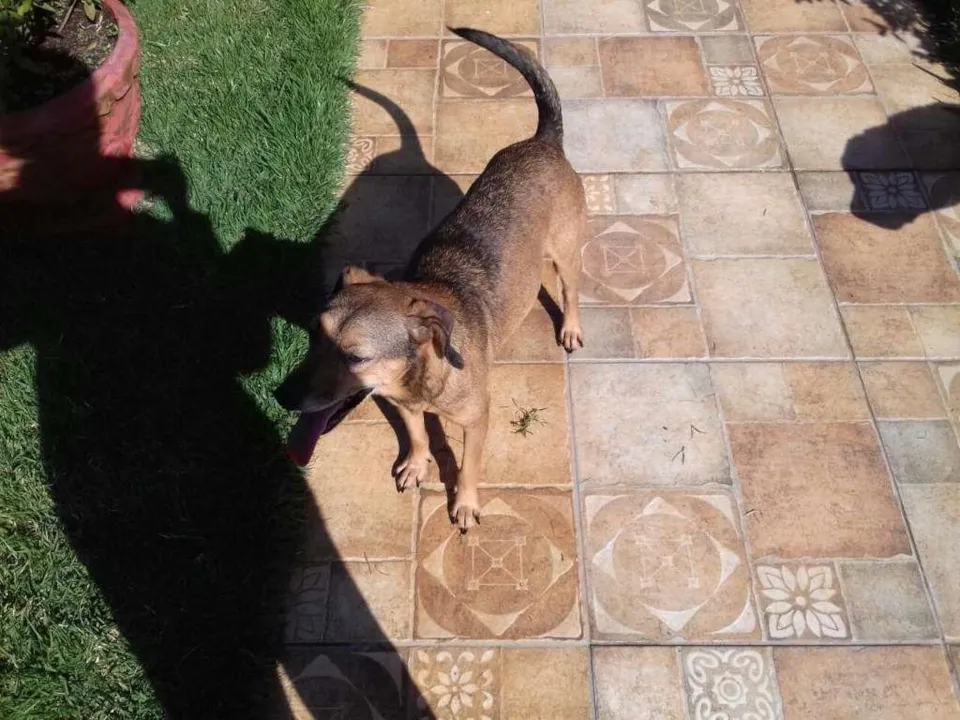Macho com cerca de 4 anos para adoção. Ele tem porte médio, está vacinado, desverminado e castrado. Convive bem com outros animais e crianças e pode ser entregue na casa do adotante.