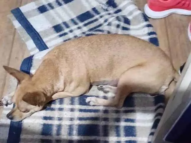 Procurando um novo lar para a doce e adorável Docinho, uma cadela SRD-ViraLata de porte pequeno, com pelagem caramela e 4 anos de idade. A Docinho é castrada, vacinada, vermifugada e tem um temperamento dócil, calmo e carente. Ela vive bem em casa com quintal e é sociável com gatos, outros cachorros, crianças, desconhecidos e idosos.