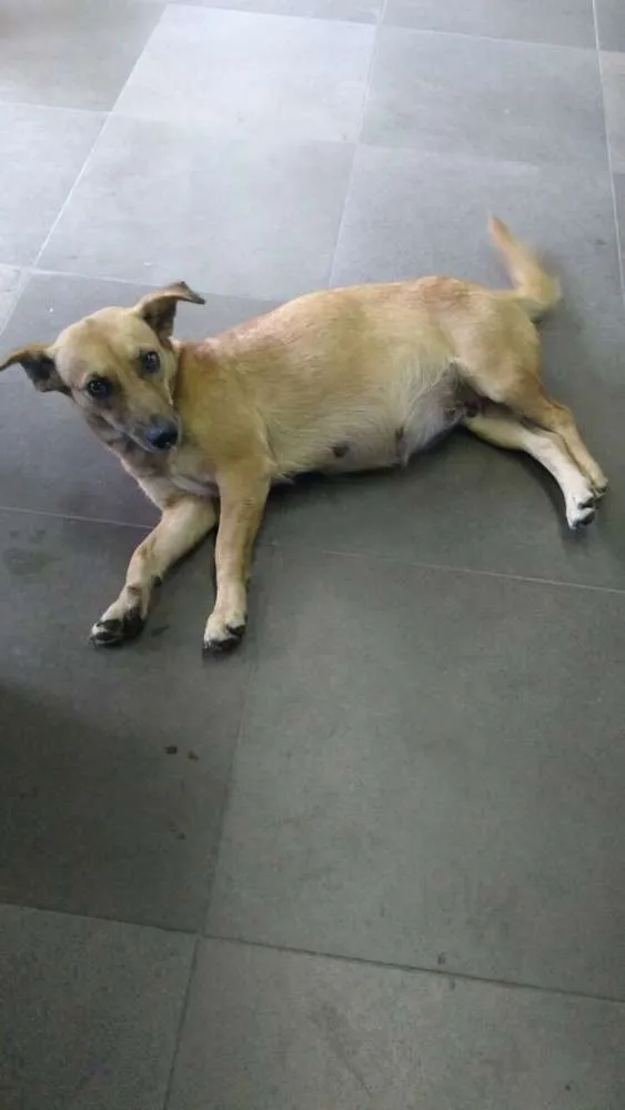 A "Dora" apareceu em meu local de trabalho no fim de semana do Reveillon 2016-2017. Está prenha, é extremamente dócil, não faz as necessidades dentro de casa, sabe o lugar de dormir (paninho/almofada), pede carinho, senta para pedir comida, por isso imagino que ela tenha fugido de alguma casa nas redondezas da CEEE (final da Av. Ipiranga, ao lado do condomínio da Rossi). Se o dono não aparecer, ela e os filhotes (que ainda não nasceram) estão disponíveis para adoção. Ela está em minha casa, mas tenho que deixar ou ela ou minhas cadelas presas, pois as minhas cachorras não aceitam outros cães no pátio. Não pude dar vacina nem vermífugos devido à prenhez, mas me comprometo a auxiliar com os custos destes medicamentos para quem puder ficar com ela (estou arrecadando dinheiro com amigos e parentes), também já solicitei castração de baixo custo pra ela em algumas entidades.
