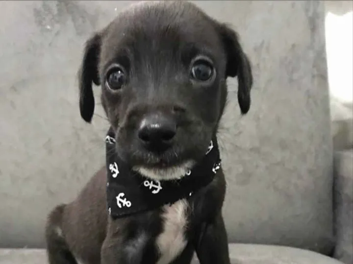 Ele e seus 8 irmãos foram encontrados no litoral, abandonados. Voluntários os resgataram, trataram, vermifugaram e deram a 1 dose da vacina.
