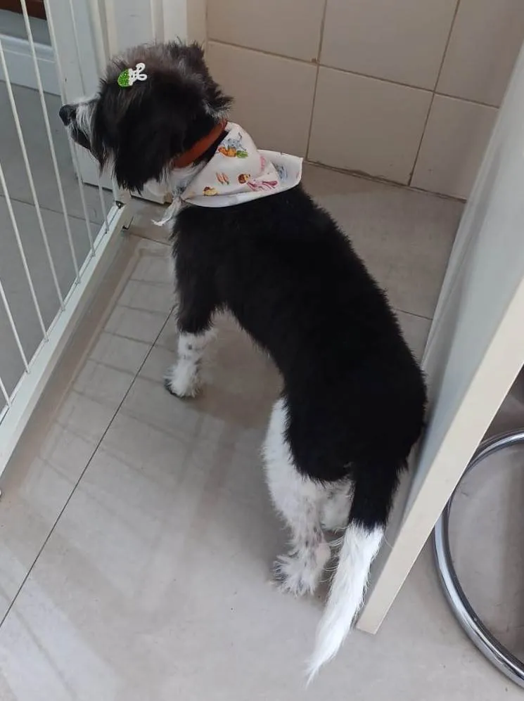 FLOQUIM, sem raça definida, pequeno porte, pesa 8,5 kg, com vacinas em dia, CASTRAÇÃO GARANTIDA > Vida e Saúde Animal, coleira anti pulgas válida até outubro/23. É um cãozinho muito dócil e saudável. Idade aproxima de 1 ano. É muito inteligente, já está aprendendo alguns comandos, como sentar e deitar. Não gosta de ficar sozinho, ela late e chora muito. Quando tem companhia fica muito tranquilo e ador brincar. Gosta de crianças e fica tentando interagir com os gatinhos, que infelizmente não aceitam a presença dele. Precisa de espaço e companhia para ser feliz.