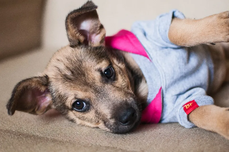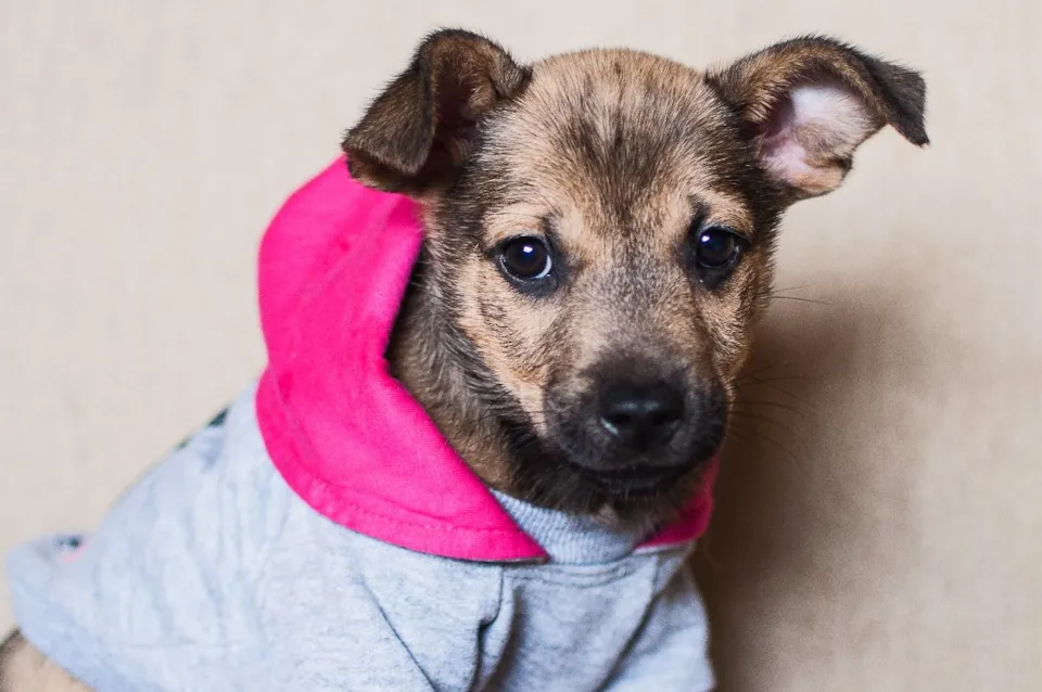 A mãe é cruza de labrador e a única informação que se tem do pai é a de que tem porte pequeno.