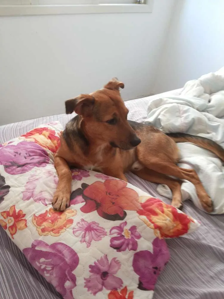 O Gordinho é um cachorro muito meigo e calmo, não latiu ou chorou uma única vez desde que chegou aqui em casa. Macho jovem não castrado, porte médio, preto e caramelo, parece uma mistura de labrador com pastor alemão. Muito doce.