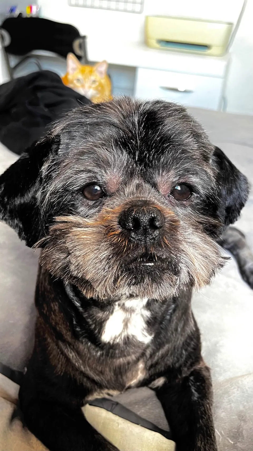 Conheça o Jimmy, um adorável cãozinho da raça Shitzu de 5 anos, com uma linda pelagem preta e porte pequeno. Poppy é um verdadeiro amigo para todas as horas, ele é vacinado, vermifugado e super saudável. Seu temperamento é dócil, brincalhão e carente, buscando sempre estar próximo de seus tutores e receber muito carinho.
