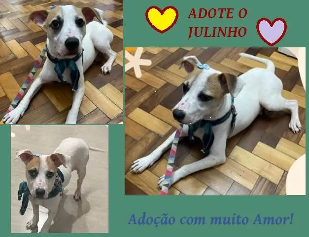 "Eu sou o Julinho. Sou CASTRADO, vermifugado e despulgado. Sou porte *G*. Fui colocado fora, na frente de um Mercado na zona sul de Porto Alegre, e uma tia me resgatou, para que eu não morresse na faixa movimentada, ou sucumbisse de fome pela rua. Infelizmente esta tia não pode ficar comigo. Então preciso de um lar! Prometo ser obediente, carinhoso, muito comportado, e retribuir todo o amor que eu receber. Prometo ocupar um espacinho pequeno e proteger muito, minha nova família! Meu futuro tutor precisará ter um PÁTIO FECHADO e bem SEGURO, sem rotas de fuga.