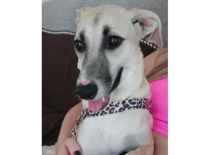 Lara, aproximadamente 1 ano, de porte médio, carinhosa e ama brincar e correr, é um pouco medrosa mas muito amável.
