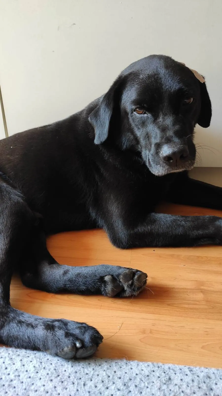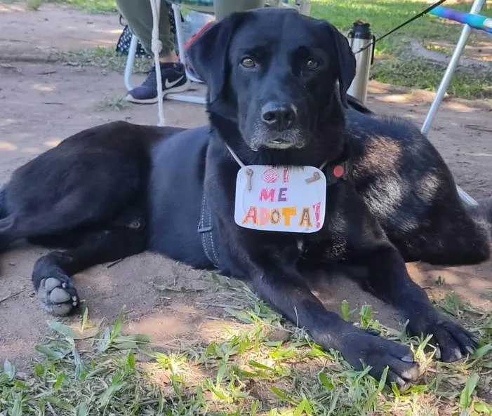 LIBÓRIO - Labrador preto, tamanho Grande (+ou- 30 quilos), castrado, está sendo vacinado, temperamento calmo, brincalhão (brincadeiras com bolinhas, brinquedos de corda, adora roer ossinhos). É carinhoso, muito dengoso. É desconfiado com estranhos. Sedá bem com outros cães e gosta de crianças. Com gatos, ainda não teve contato.