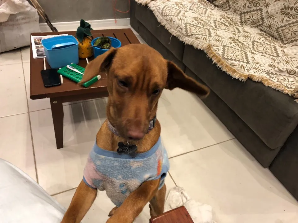 Cachorro porte pequeno, pelagem curta, cor marrom e olhos verdes. Brincalhão, com todas vacinas. Faço a doação já castrado por minha conta. Achamos na rua, tratamos e agora está pronto para um novo lar que vai amar muito ele. Não podemos ficar pois já temos 3 cachorros. Extremamente dócil e brincalhão.