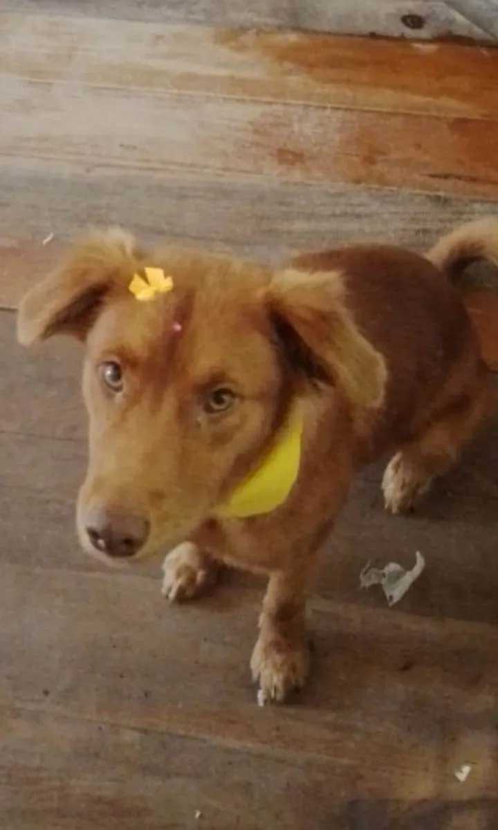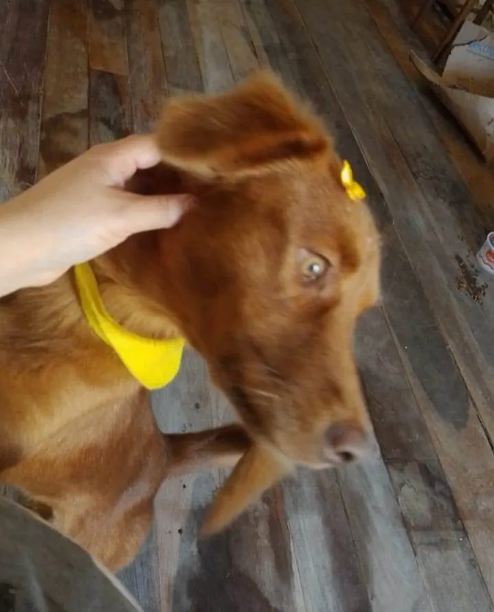 MEL - Porte M, pesa 16 kg, Idade 1,5 +-, Castrada, Dócil e brincalhona. Gosta de crianças. Se dá bem C outros cães. So precisa adaptar. Adoção para pátio bem fechado.