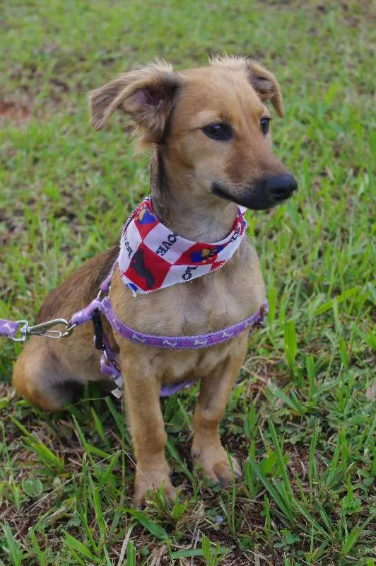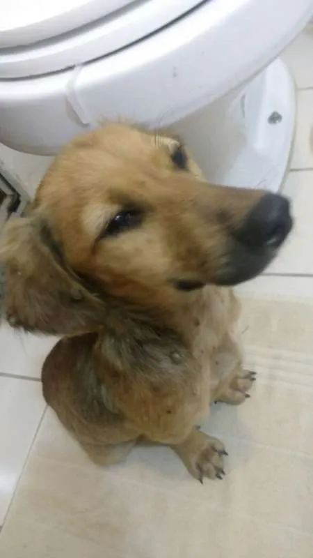 Fui recolhido cheio de carrapatos e com muita fominha por uma tia do Pé de Chulé, à noite, próximo a uma via bem movimentada. Tomei banhos - muitos, pra tirar todos os bichinhos no meu pelo -, remédios, ganhei comidinha boa e agora estou pronto para ir em busca de uma família que me ame muito e que me mereça.