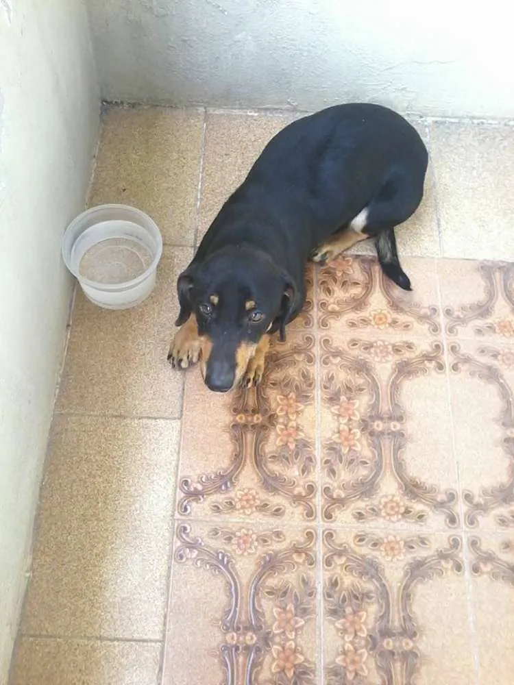 Cachorro macho, muito dócil e amável, quase não late. Pequeno/médio porte. Pelagem curta. Parece salsicha só que maior (pode ser mistura com vira-latas). Aparenta ser cachorro jovem. Não há informações detalhadas, pois foi encontrado perdido no bairro Glória. Procuro novo larpara ele.