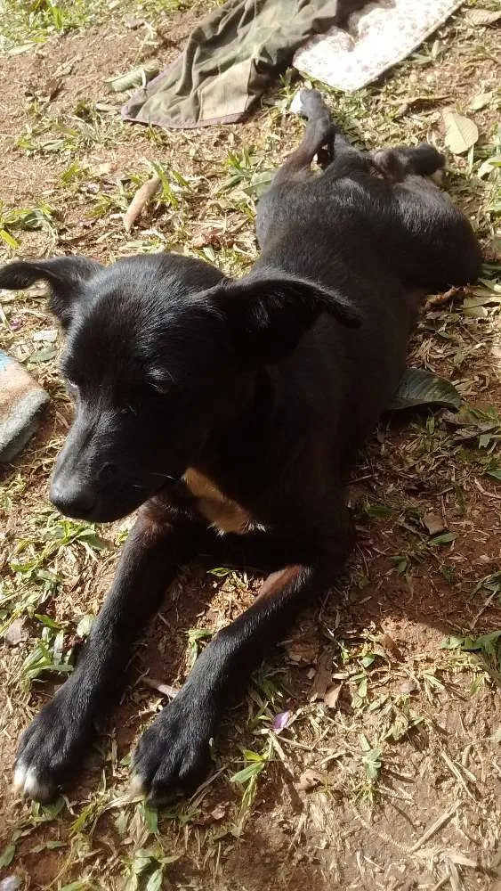 Ela é muito brincalhona e tem todo o jeito de que será boa para guarda da casa. Ela deve ter entre 4 e 5 meses e deverá ser de médio porte.