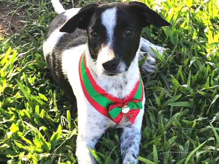 NOAH é um filhotão de 6 meses de idade, porte M e pesará no máximo 15kg. Ele é um cãozinho tranquilo, amoroso e brincalhão.