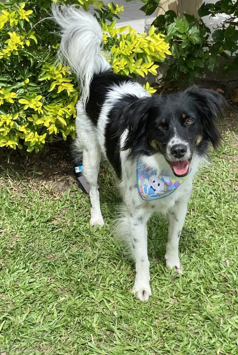 Noel eh um cão macho, adulto de 2 anos de idade, porte m (15kg), sociável, carinhoso, obediente, acostumado até mesmo dentro de casa. Ele está para adoção responsável.