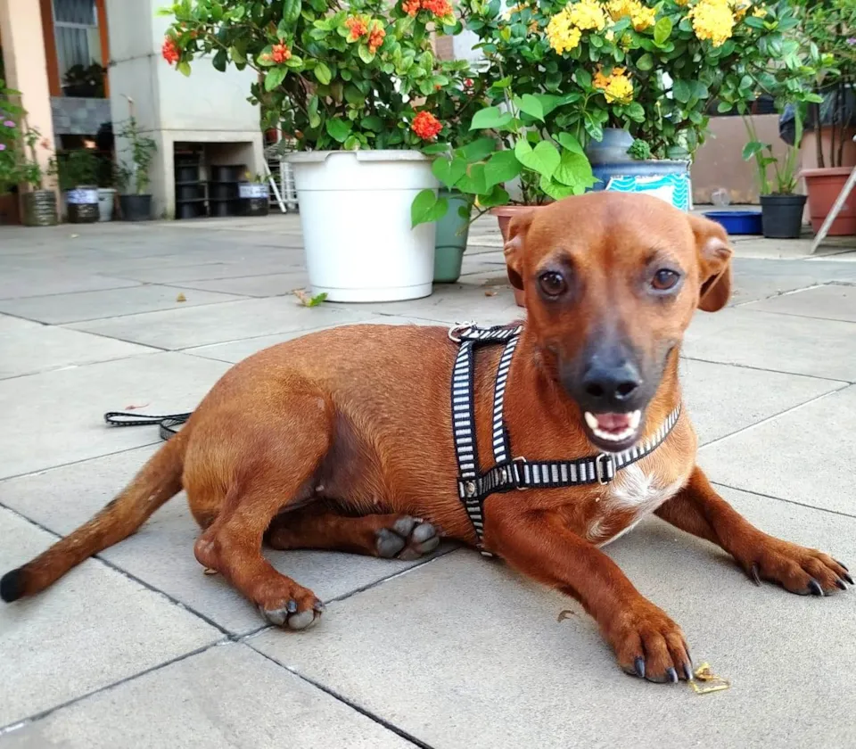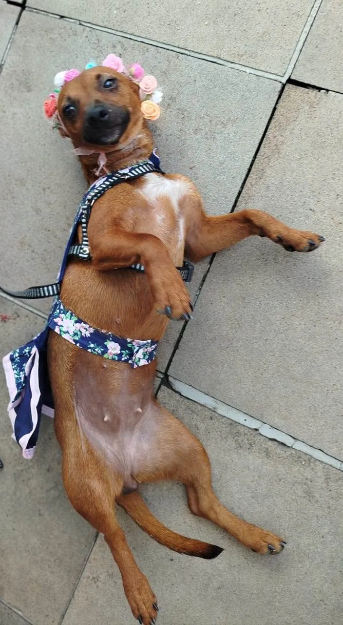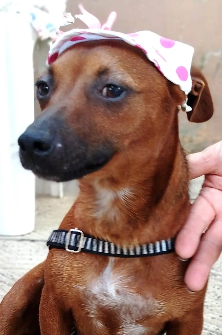 Pandora foi retirada de um papeleiro, estava no cio e havia cruzado com cães maiores, uma amiga resgatou, pediu nossa ajuda, castramos microchipamos, desverminamos e despulgamos. Foi para adoção, tomou a primeira dose da vacina, mas por motivos familiares a adotante não pôde mais ficar com ela. Será doada para casa ou apto sem acesso à rua, livre de corrente, com preenchimento de questionário de adoção e assinatura de termo de adoção responsável. Ela adora passear e chama a atenção por onde passa , pois é bem comunicativa e agitada. Contatos com Isabel 51 998254431.