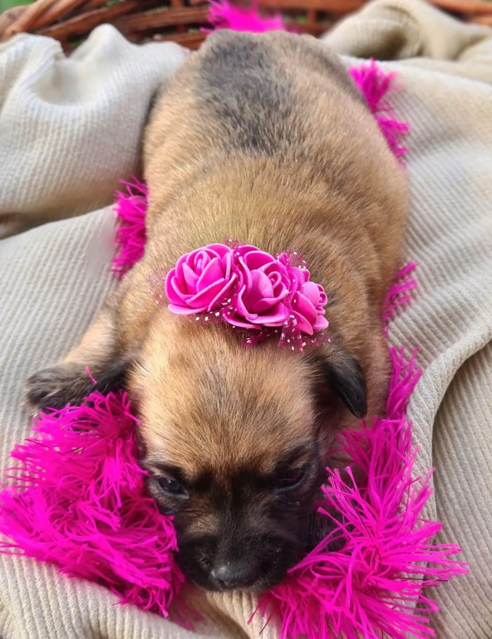 Penelope, femea em torno de 30 dias ou um pouco mais, na~o temos certeza do tamanho, a mae eh porte P, mas pai eh desconhecido.Sera doado para patio bem fechado sem risco de fugas e livre de correntes. Vacina por conta do adotante, entrevista com questionario e termo de adocao responsavel. Contato com Rose 51991436359