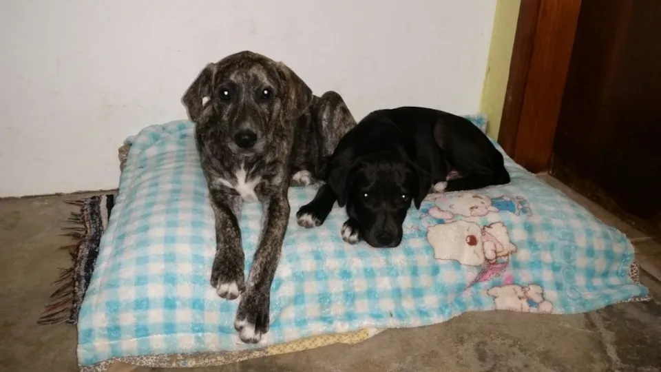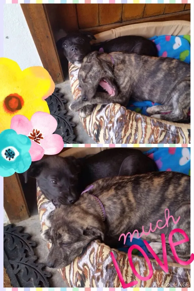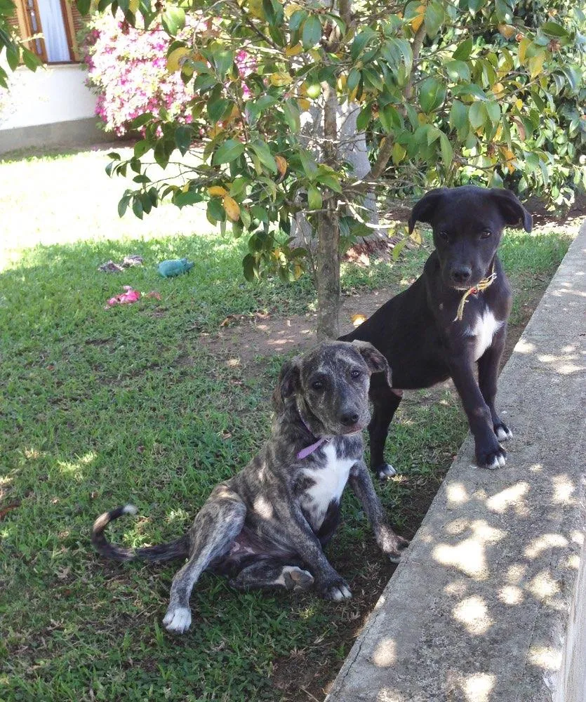 Nós gostamos muito da casa da tia, mas os cachorros que ela tinha antes são velhinhos e não gostaram da nossa super energia! Só por isso ela vai nos doar! Somos muito amados, carinhosos, beijoqueiros e alegres!