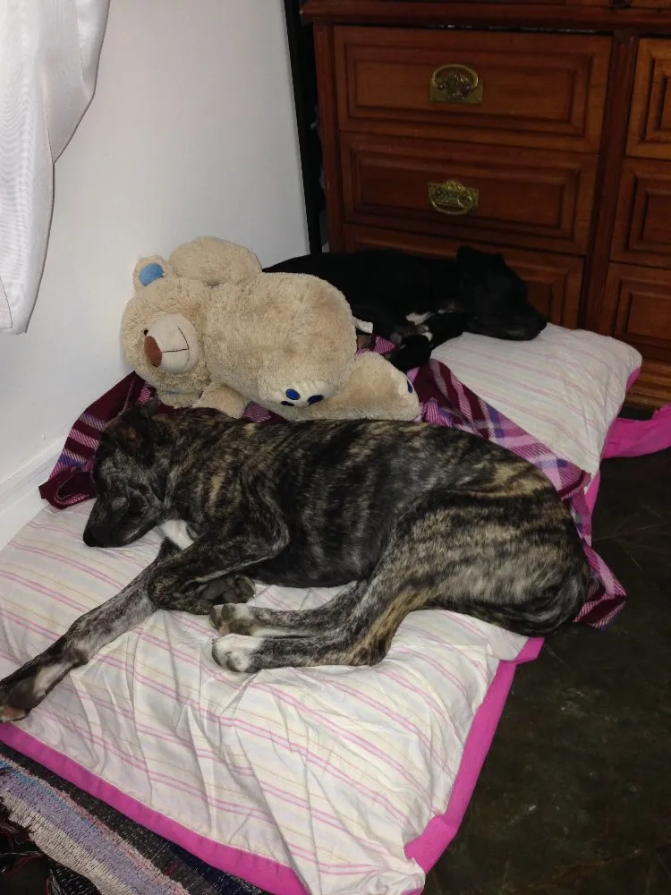 Ela nos deu banho, comida, tirou as pulgas e os carrapatos, deu vermífugo, internou o Charlie numa clínica muito legal quando ele teve pneumonia, castrou e agora estamos grandões (temos aproximadamente 9 meses) e prontos para achar um lar definitivo.