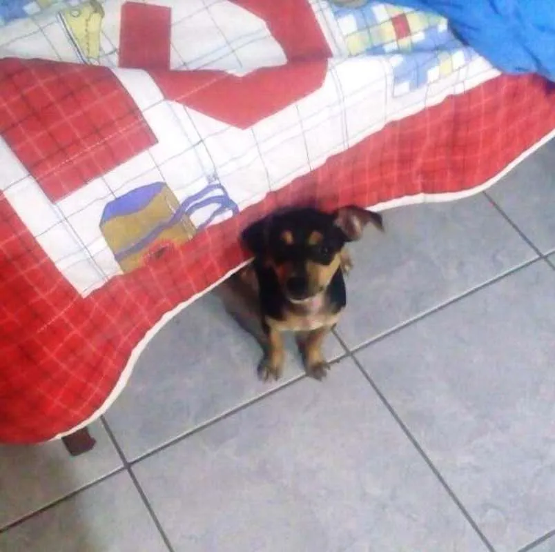 Essa cadelinha linda foi abandonada no meu trabalho na semana passada (11/10/2017). Ela estava com vermes e muito machucada. Estamos tratando ela desde então, mas com muita dor no coração não podemos ficar com ela, pois eu e minha namorada já temos 5 cachorros! Ela é uma fofa, muito educada, comportada, brincalhona e muuuuuuito carinhosa. Ela tem por volta de 2 meses, já está desverminada e os ferimentos estão cicatrizando. Também ensinamos a ela o local adequado para fazer suas necessidades (coco e xixi só no jornal ou na rua hehe). Ela é um amor de cadelinha e precisamos achar um dono que ame cachorros tanto quanto nós, pois ela merece uma família tão amorosa quanto ela.