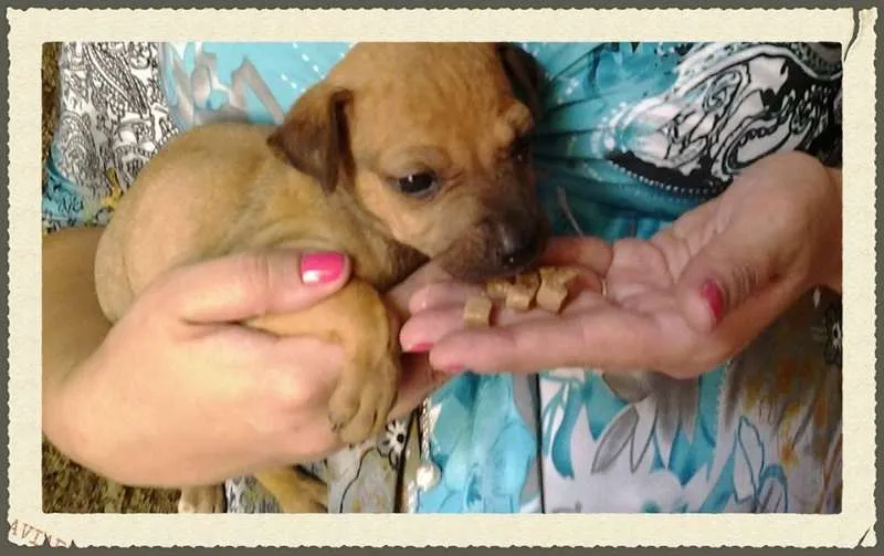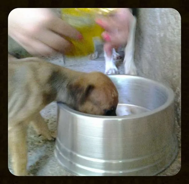 Em 10/12/13 o Pingo e sua mãezinha estavam vagando, abandonados, numa estrada de chão batido na grade Porto Alegre, desviando de caminhões. Foram resgatados. A mãe do Pingo ainda está muito fraquinha para ir para adoção mas o Pingo é um menino esperto, que amanhã, com ajuda da Dinda Letícia, vai ser vacinado e desvermifugado, e está disponível para adoção. Vira-latinhas não possuem padrão, então não sabemos bem de que tamanho o Pingo vai ficar. Contudo, a mãe dele, que aparece nas fotos, é pequena (não mini), ela tem cerca de 8kg. O Pingo deverá ser compatível com a vida em um apartamento, ou numa casa com pátio restrito. Se houver mais espaço, melhor.