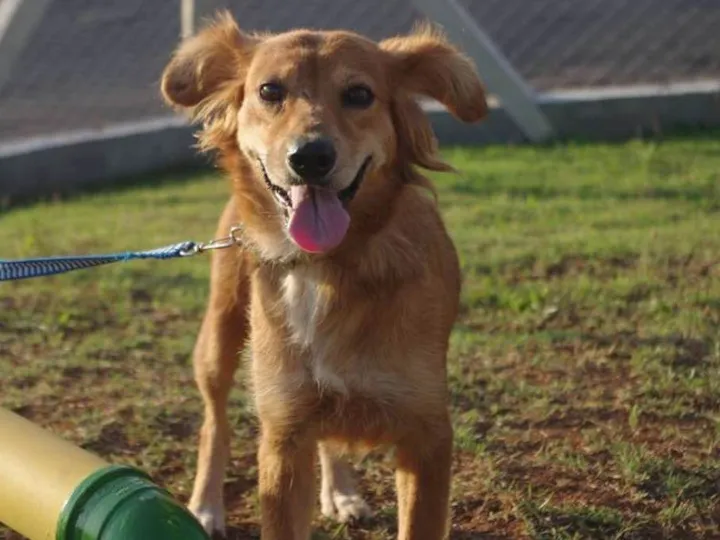 Essa lindona é a Popis! Uma linda e carinhosa fêmea porte M, em torno de 1 ano, desverminada, castrada. Muito querida e sociável! Se adaptou bem com machos e fêmeas.