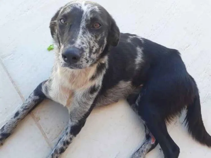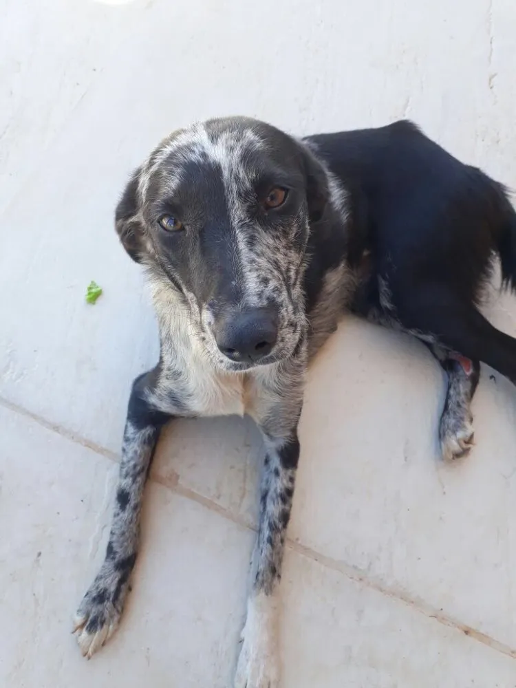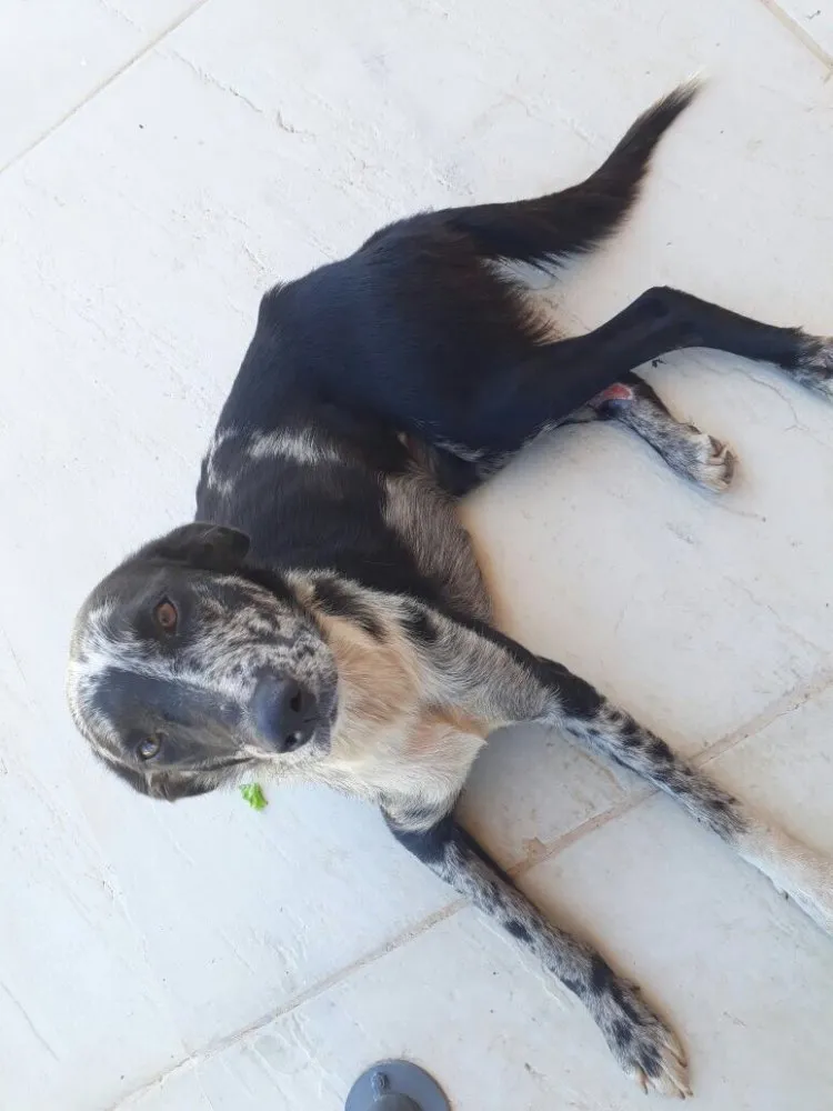Essa cadelinha é muito alegre, rebolante, carinhosa e um DOCE! Se daria bem em apartamento e com crianças também! Uma perfeita companheira. Não sabemos a idade correta, mas parece ser em torno de 2-4 anos. Ela está magrinha, mas tenho certeza que ficaria ainda mais linda quando estiver rechonchudinha!