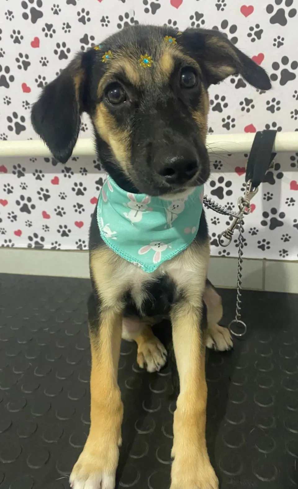 SHENNA - Seis meses, castrada, tomou a primeira doce de vacina importada. Tem uma ótima saúde. Adora passear na coleira, andar de carro, brincar de bolinha. Tem energia de sobra. Ela tem o costume de dormir dentro de casa. Se quer uma companhia para alegrar os dias, a Shenna é ideal.