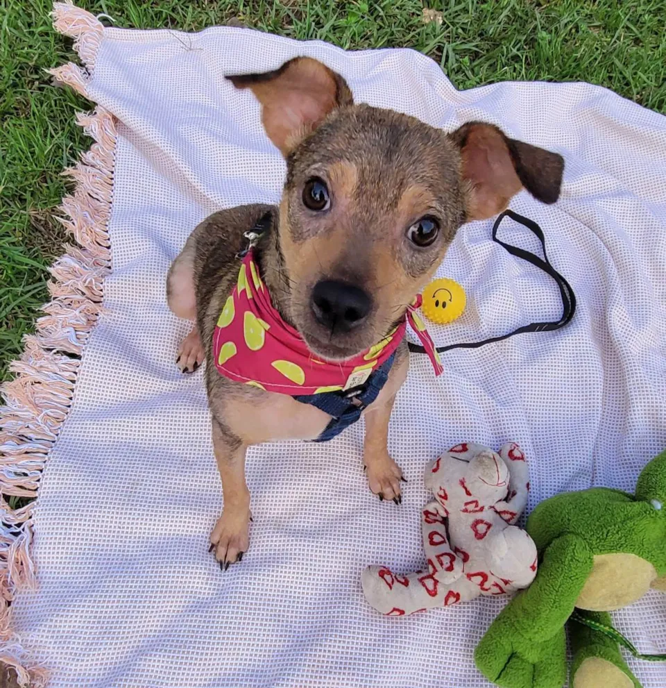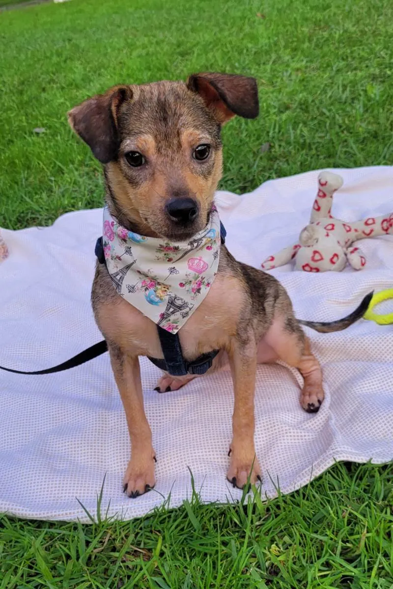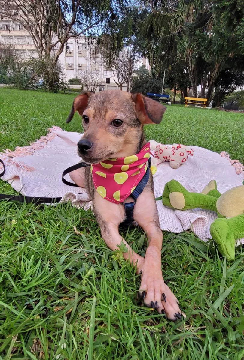 Essa fofura foi resgatada na BR 290 com 3,300gr. Hoje pesa 6 kg, porém, segundo a veterinária , não deve crescer mais. está desverminada, com antipulgas e com 2 doses da vacina. Já passou por atendimento veterinário e agora espera um lar amoroso. Ela brinca sozinha com seus ursinhos e gosta de um ossinho pra passar o tempo. Não late quando fica sozinha e se dá bem com cães e gatos.