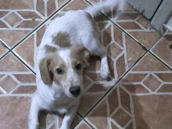 O Spiker é branco com manchas amarelas, ele é adorável e bagunceiro, já está desverminado e já tomou as três doses da vacina que protege contra doenças, ainda não tomou a anti- rábica, acho que é isso.