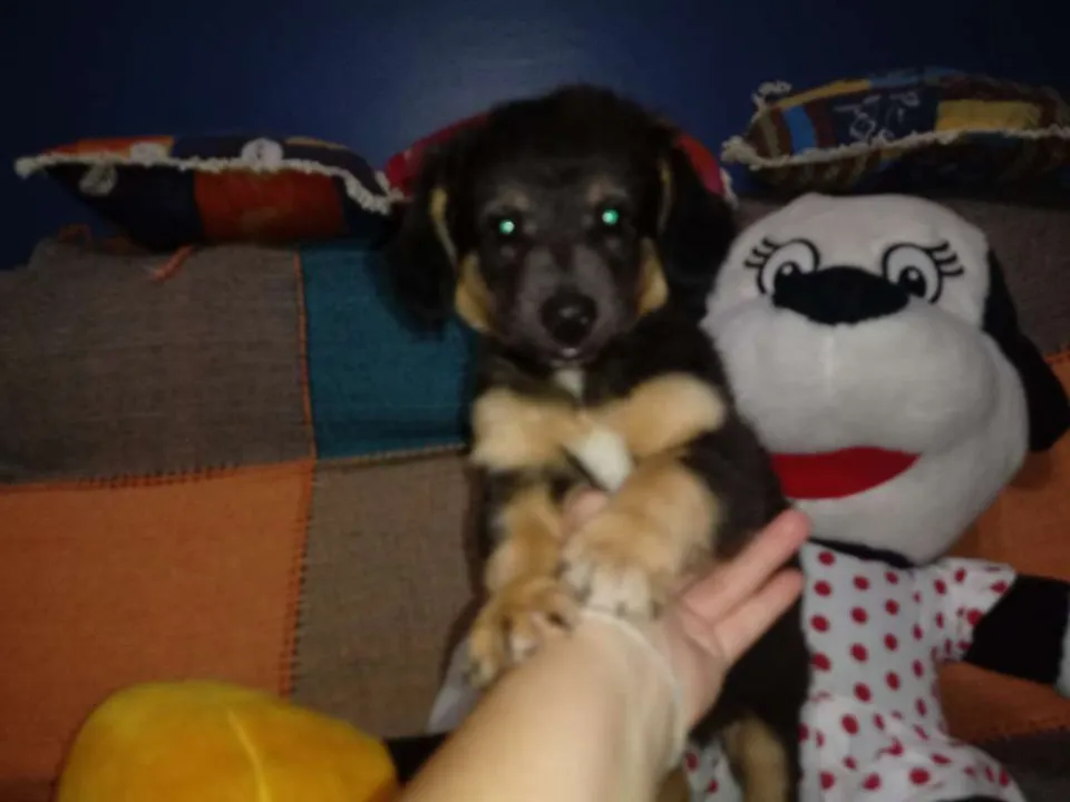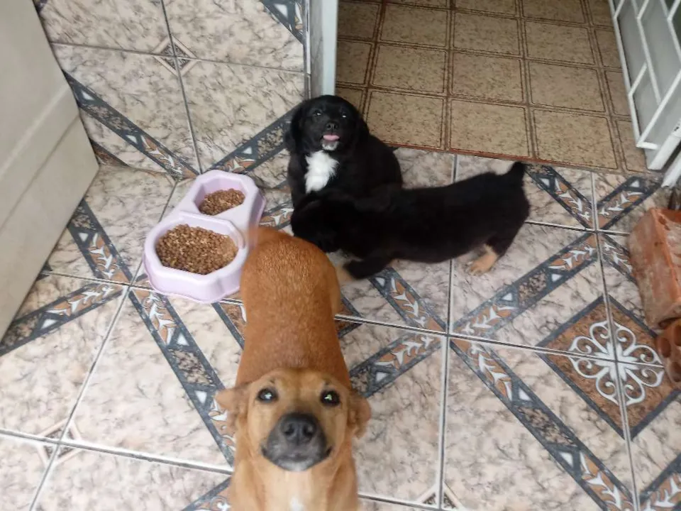 Dois irmãos machos, com aproximadamente 3 meses de pelagem preta (um deles tem manchas em caramelo e o outro tem uma mancha branca no peito). Mãe dos filhotes é de porte P. Estão desvermifugados.