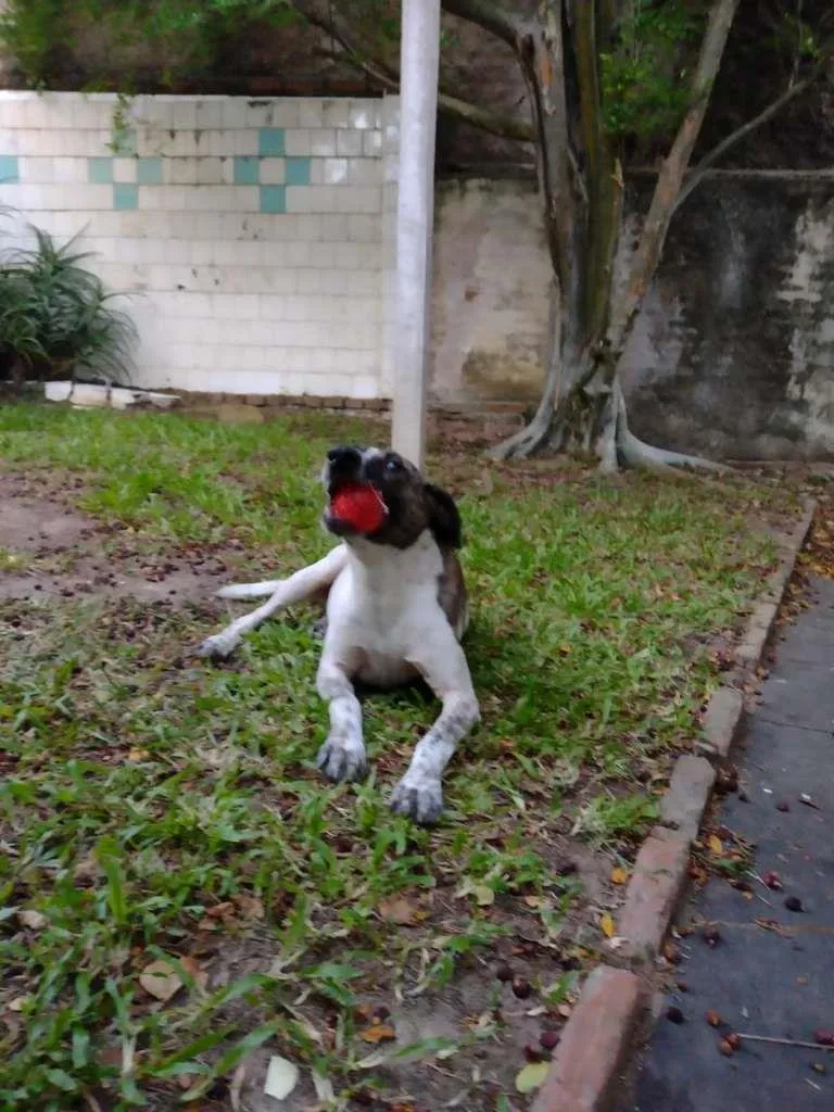 Thor é um cachorro que já sofreu maus tratos acorrentado. Hoje ele adora brincar e se dá muito bem com seres humanos. Precisa de espaço e carinho.