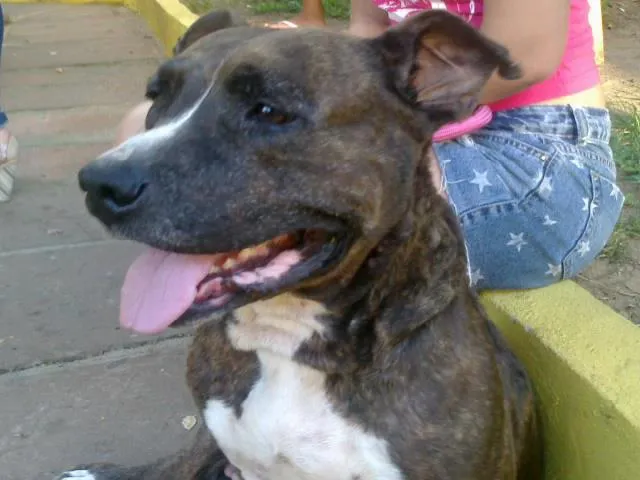 A Tigra foi encontrada na rua, estava sendo enxotada por pedras e pau, pelo simples fato de ser uma Pitt Bull.