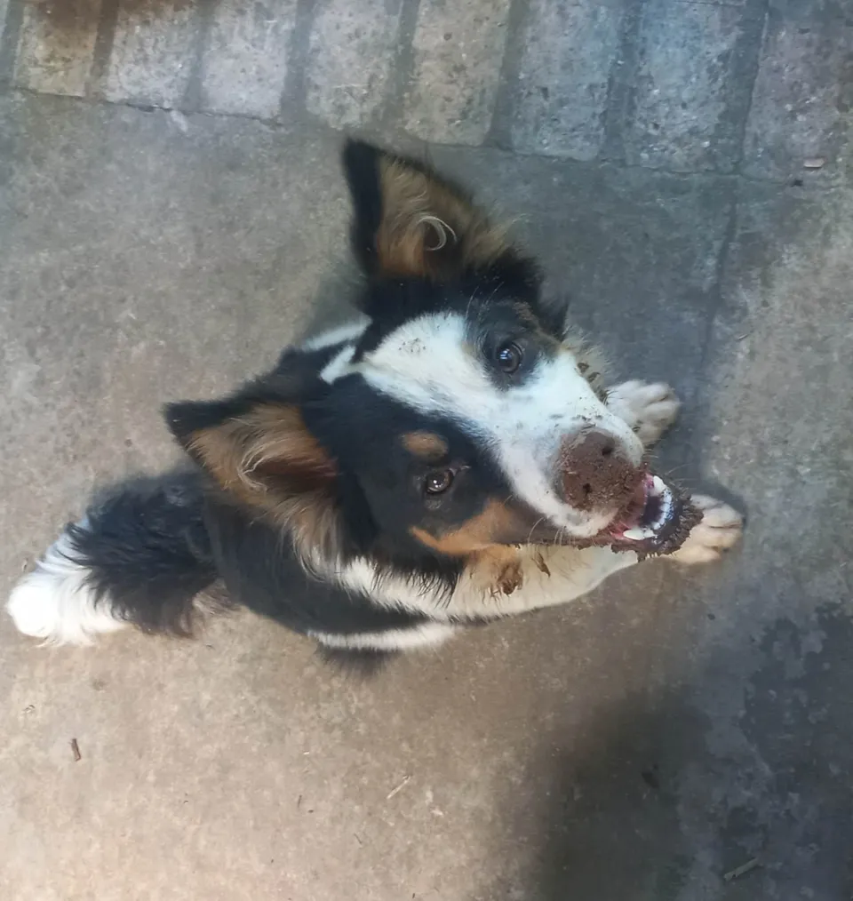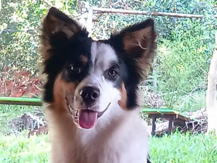 Border Collie mesclado, de pequeno porte.