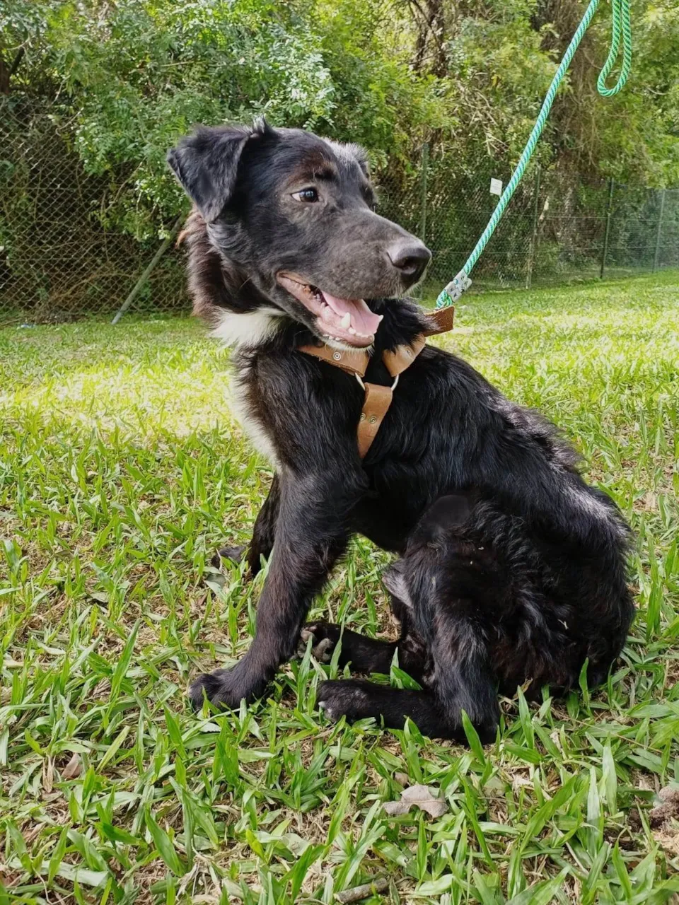 Oi, tudo bem? Eu sou o Venâncio, um meninão de 7 meses, cheio de amor pra dar. Tenho pelagem preta com manchinhas brancas, um charme só, e sou de porte médio — do tamanho certo pra caber no seu colo (ou pelo menos tentar ??).