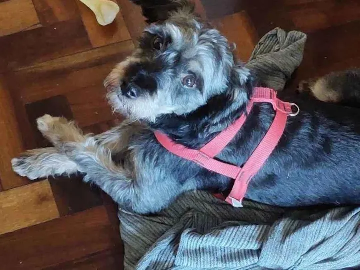 O Yoshi acabou de fazer oito anos e é uma mistura de Schnauzer com vira lata, porte entre P e M, pesa em torno de 10kg.